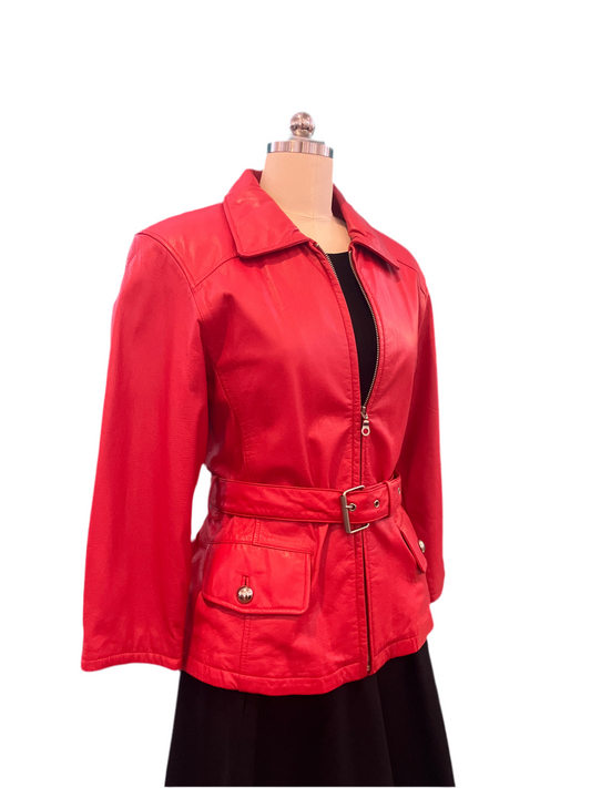 Vintage Maxima Leather Red Belted Jacket