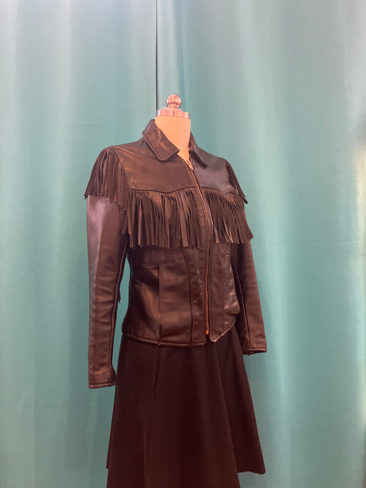 Park V Black Leather Jacket With Fringe