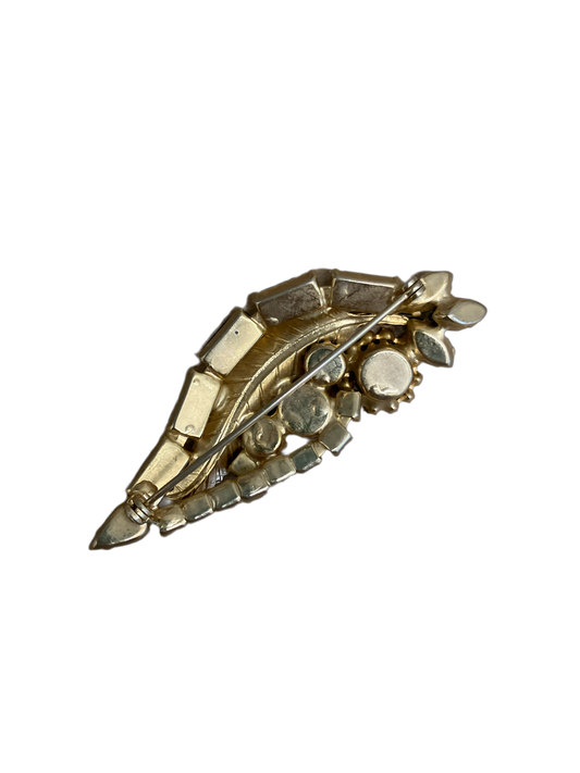 Vintage Leaf Rhinestone Pin with Amber and Black